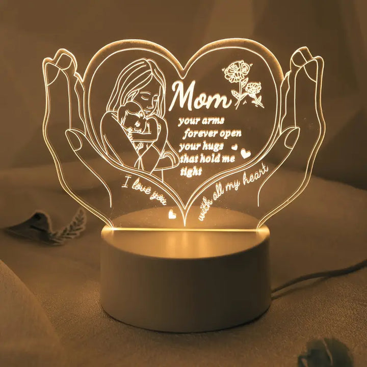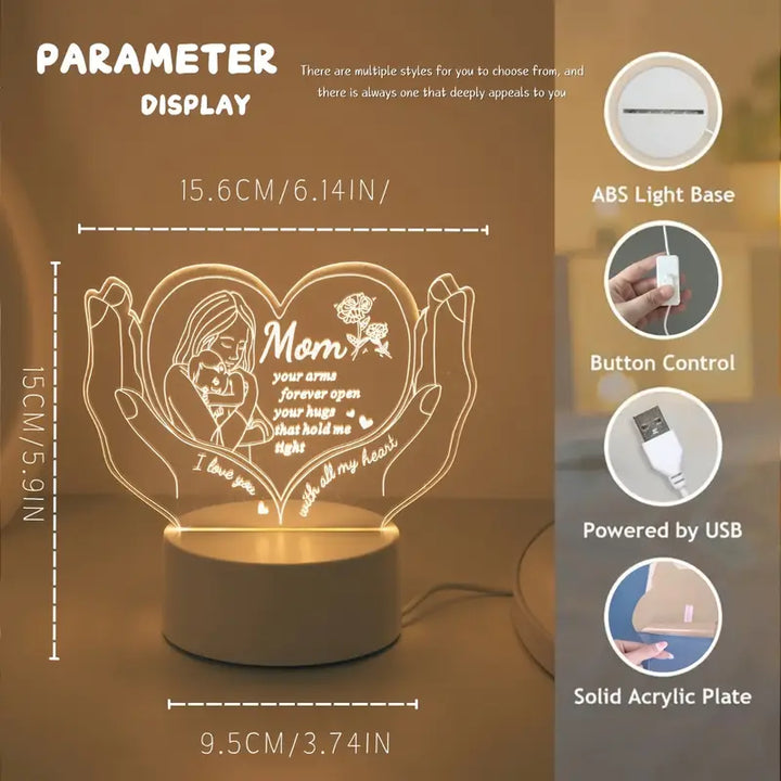 Featuring a modern design and soft ambient lighting, it’s the perfect reminder of unconditional love—ideal for bedrooms, living rooms, or as a touching gift.