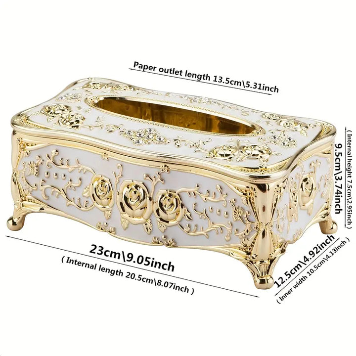 Featuring a white and gold floral design, this decorative tissue box holder adds a refined European flair to your space—perfect for kitchens, living rooms, and even hotel suites.