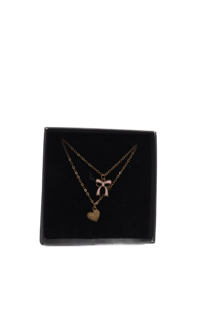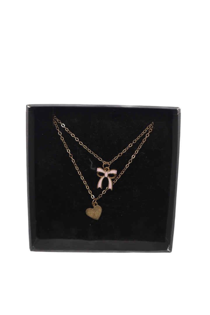 The Pookie Necklace features a delicate double-layered gold chain, adorned with a dainty bow and a tiny heart pendant. It's the perfect piece to add a touch of elegance and playfulness to any outfit — whether you're dressing up or keeping it casual.